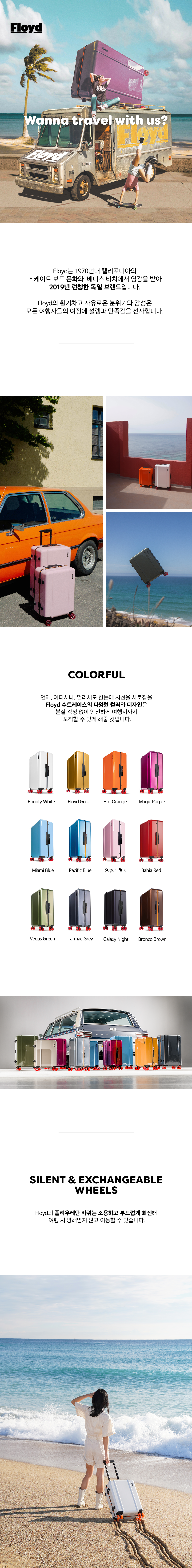 플로이드의 하드쉘(hard-shell) 기내용 수트케이스는 최고의 품질과 섬세한 공간 구획을 자랑합니다. 수 많은 여행을 경험해본 여행자들에게도 최고의 만족감을 선사할 것입니다. 여행의 설렘을 간직하고 있고 좋은 디자인에 대한 갈망을 가진 사람들에게 완벽한 파트너가 되어 줍니다.