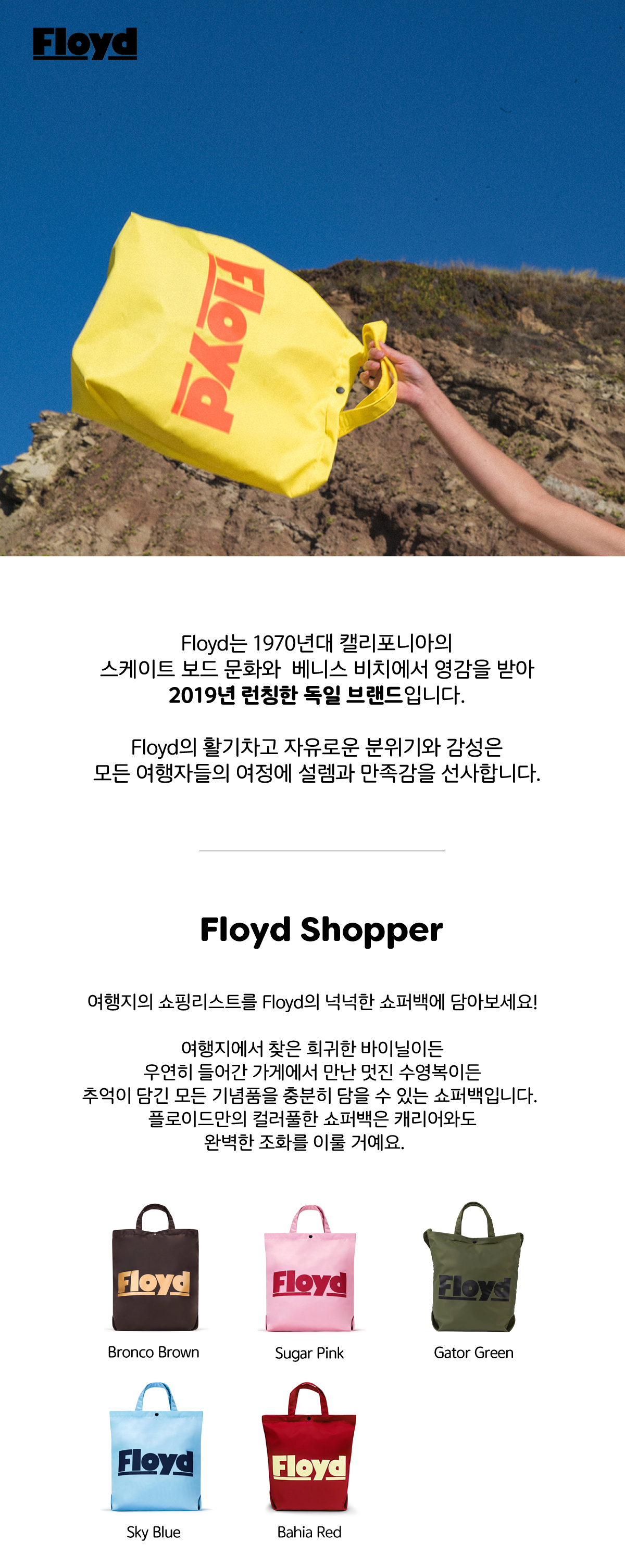 여행지의 쇼핑리스트를 플로이드의 넉넉한 쇼퍼백에 담아보세요.