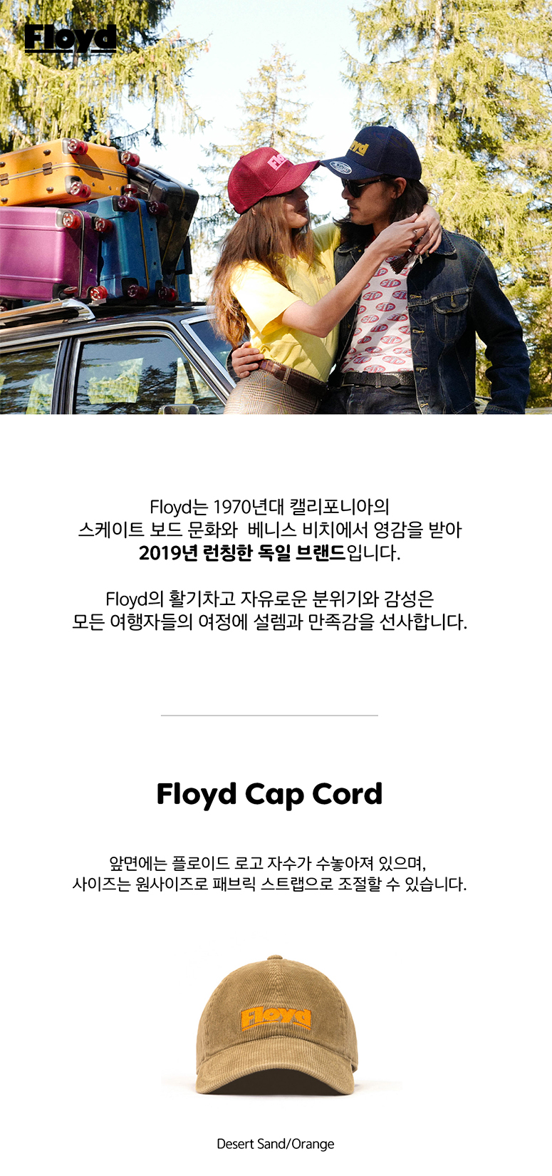 앞면에는 플로이드 로고 자수가 수놓아져 있으며, 사이즈는 원사이즈로, 패브릭 스트랩으로 조절할 수 있습니다.
